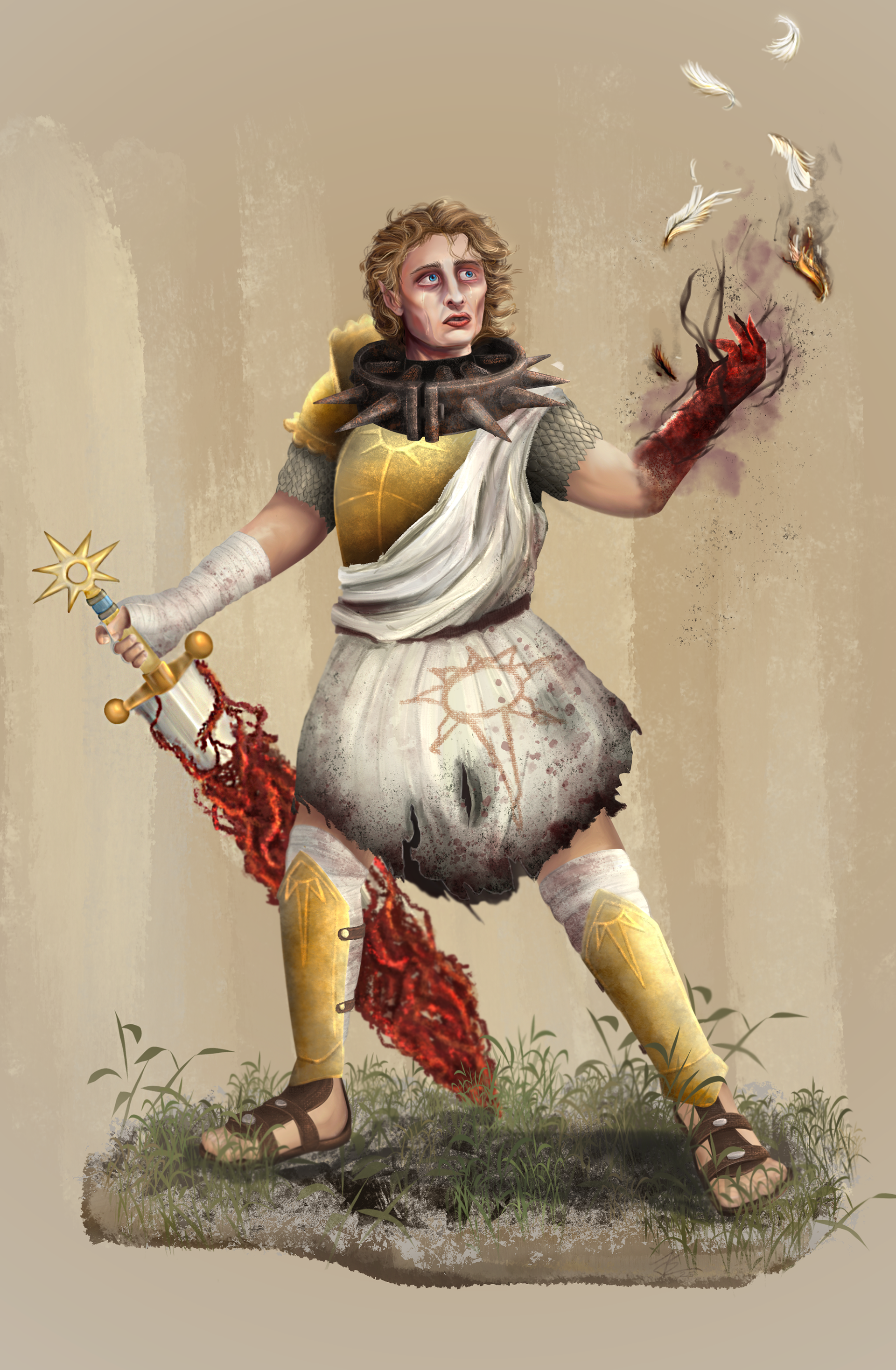 My First 'Concept Art' painting - a shipwrecked fisherman advances towards Cthulhu at Lyme Bay